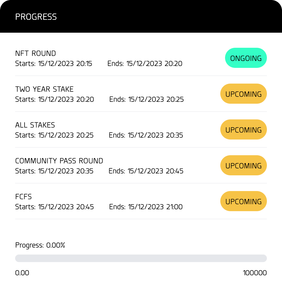 IXIR, İlk DEX Teklifi (IDO) adı verilen bir süreç aracılığıyla farklı kripto para birimi projelerine yatırım yapmanıza olanak tanır. IXIR'de her yatırım için beş tur vardır:
